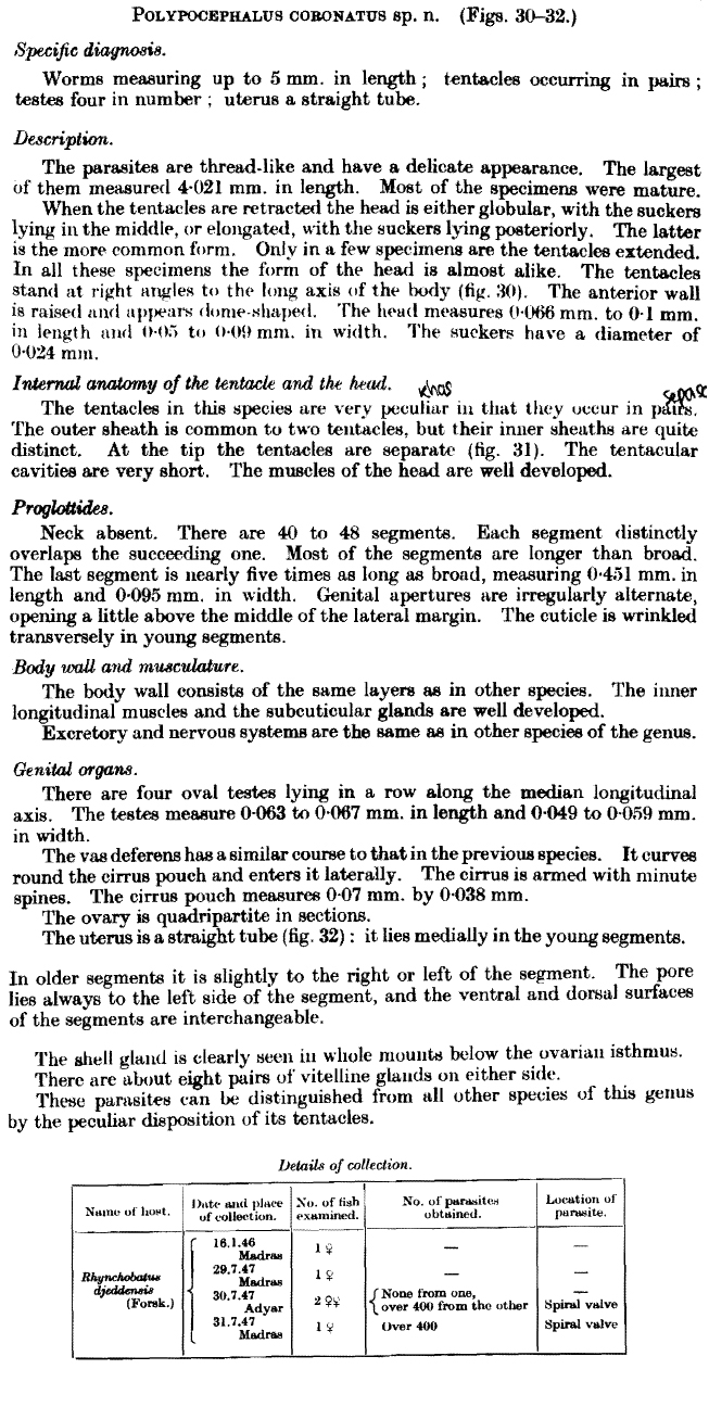 | Scientific Name Notes | This is 1 of 9 species of Polypocephalus described from Rhynchobatus djeddensis from India; it is unlikely that all of these are valid taxa. This species is provisionally considered valid until a formal assessment of the species status of each of these 9 species from this host can be made. |