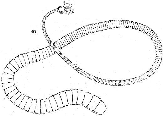 PLATE III. FIGURE 40. Parataenia elongatus n. sp. 40. Entire cestode. x 10.