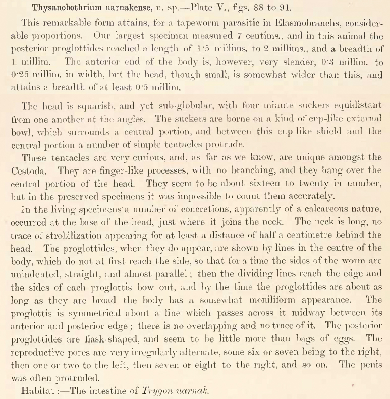 Shipley, A. E. and J. Hornell. 1906. Report on the cestode and nematode parasites from the marine fishes of Ceylon. Report to the Government of Ceylon on the Pearl Oyster Fisheries of the Gulf of Manaar (Herdman), Part 5 5: 43-96.
