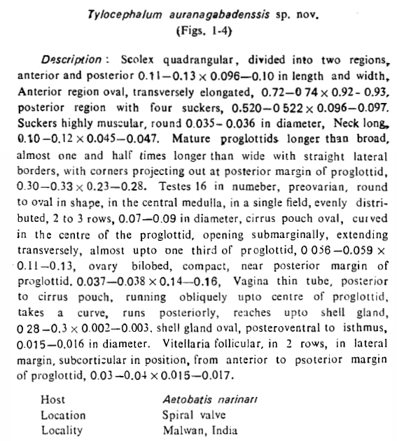 | Type Material | Holotype and paratypes, Cestodes/220-235/, deposited in Cestodology Lab. Departments of Zoology, Marathwada University, Aurangabad. 431004 |