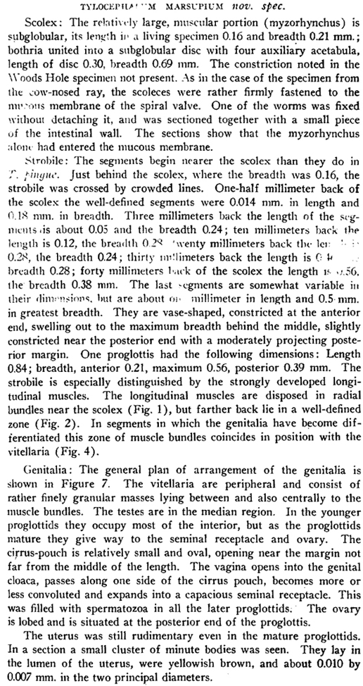 Linton, E. 1916. Notes on two cestodes from the spotted sting-ray. Journal of Parasitology 3: 34-37. (278) Download PDF |