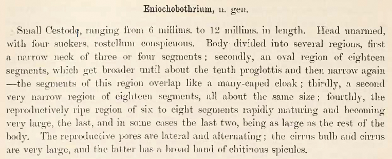 | Type Species | Eniochobothrium gracile Shipley & Hornell, 1906 |