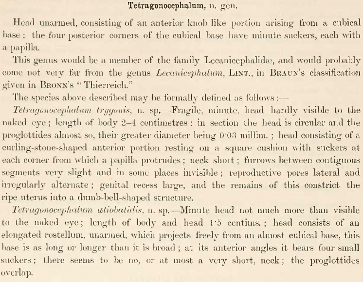 Type Species Tetragonocephalum trygonis Shipley & Hornell, 1905
