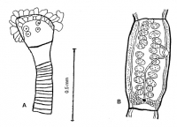 Fig. 1 : Sephenicephalum dnyandevi n. sp. A. Scolex; B. Mature segment.
