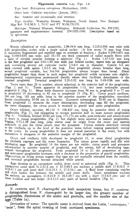 Hine, P. M. 1977. New species of Nippotaenia and Amurotaenia (Cestoda: Nippotaeniidae) from New Zealand freshwater fishes. Journal of the Royal Society of New Zealand 7(2): 143-155. (5531) Download PDF |
