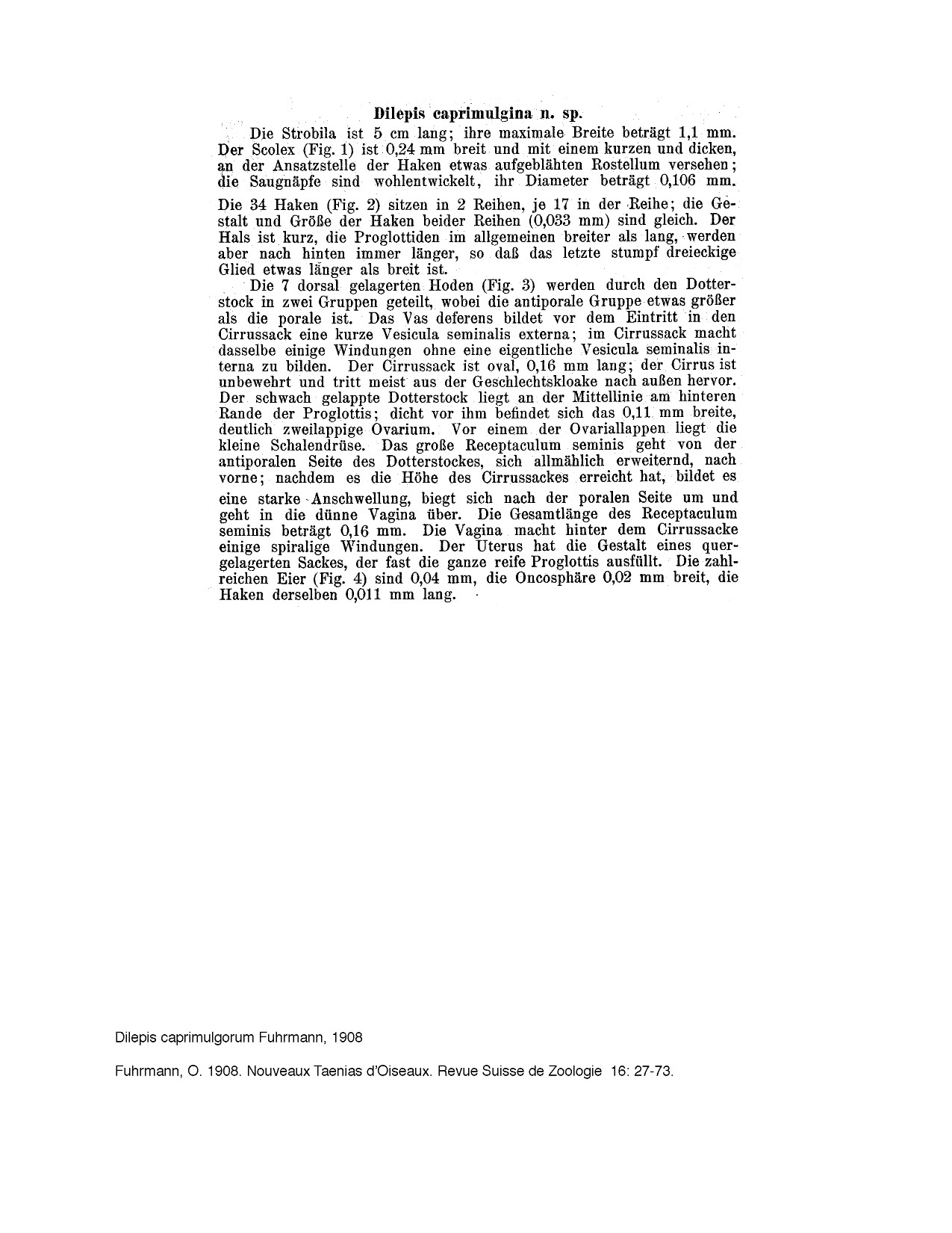 Fuhrmann, O. 1908. Nouveaux Tenias d’Oiseaux. Revue Suisse de Zoologie 16: 27-73. (2619) Download PDF |