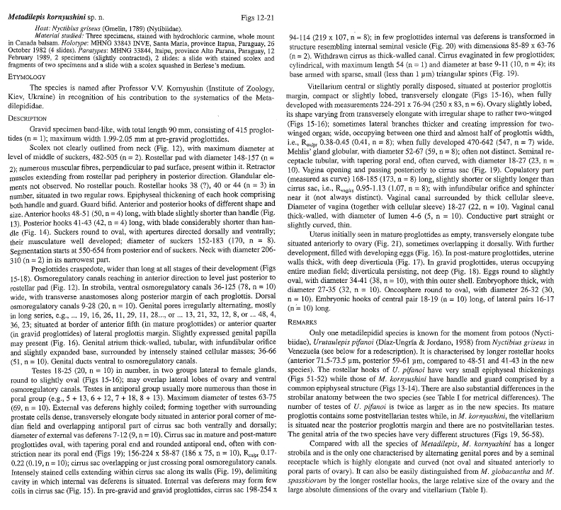 Georgiev, B. B. and C. Vaucher. 2003. Revision of the Metadilepididae (Cestoda: Cyclophyllidea) from Caprimulgiformes (Aves). Revue Suisse de Zoologie 110(3): 491-532. (2657) Download PDF |