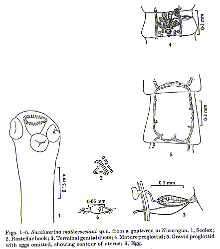 Schmidt, G. S. and K. A. Neiland. 1971. Helminth fauna of Nicaragua IV. Sacciuterina mathevossiani sp. nov. (Dilepididae), and other cestodes of birds. Parasitology 62: 145-149. (2669) Download PDF |