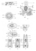 Figs. 9-11. Andrepigynotaenia haematopodis, n.g., n.sp. Fig. 9. Diagram of portion of musculature in transverse section. Fig. 10. Transverse section through cirrus-sac. Fig. 11. Reconstruction of fema... MoreFigs. 9-11. Andrepigynotaenia haematopodis, n.g., n.sp. Fig. 9. Diagram of portion of musculature in transverse section. Fig. 10. Transverse section through cirrus-sac. Fig. 11. Reconstruction of female genitalia; vitellarium displaced slightly to the right. Dorsal view. Figs. 12-17. AndJrepigynotaenia haematopodis, n.g.,n.sp. Fig. 12. Transverse section through proglottis, showing U-shaped ovary. Fig. 13. Transverse section through proglottis, showing arrangement of some of female organs and