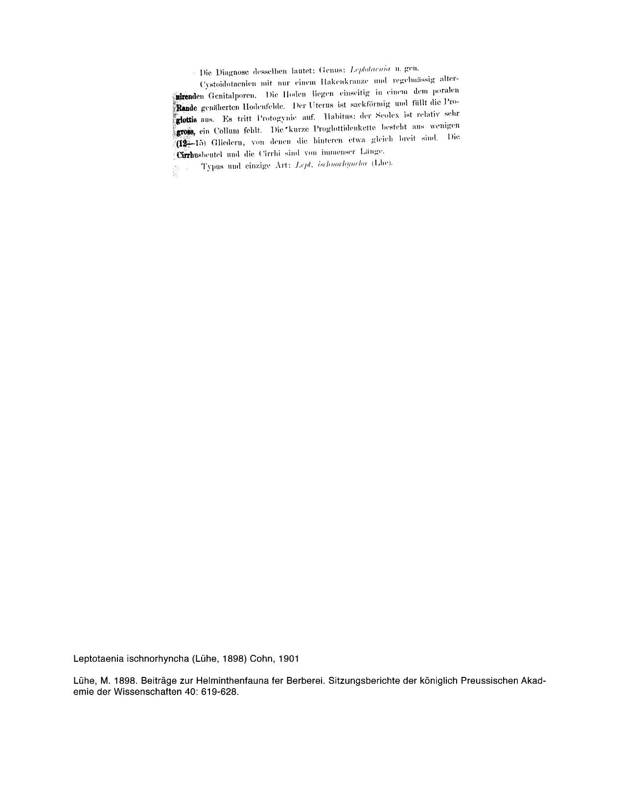 | Scientific Name Notes | -Ryzhikov & Tolkacheva (1981) synonymized Leptotaenia skrjabini with Leptotaenia ischnorhyncha (Lühe, 1898) Cohn,1901 |