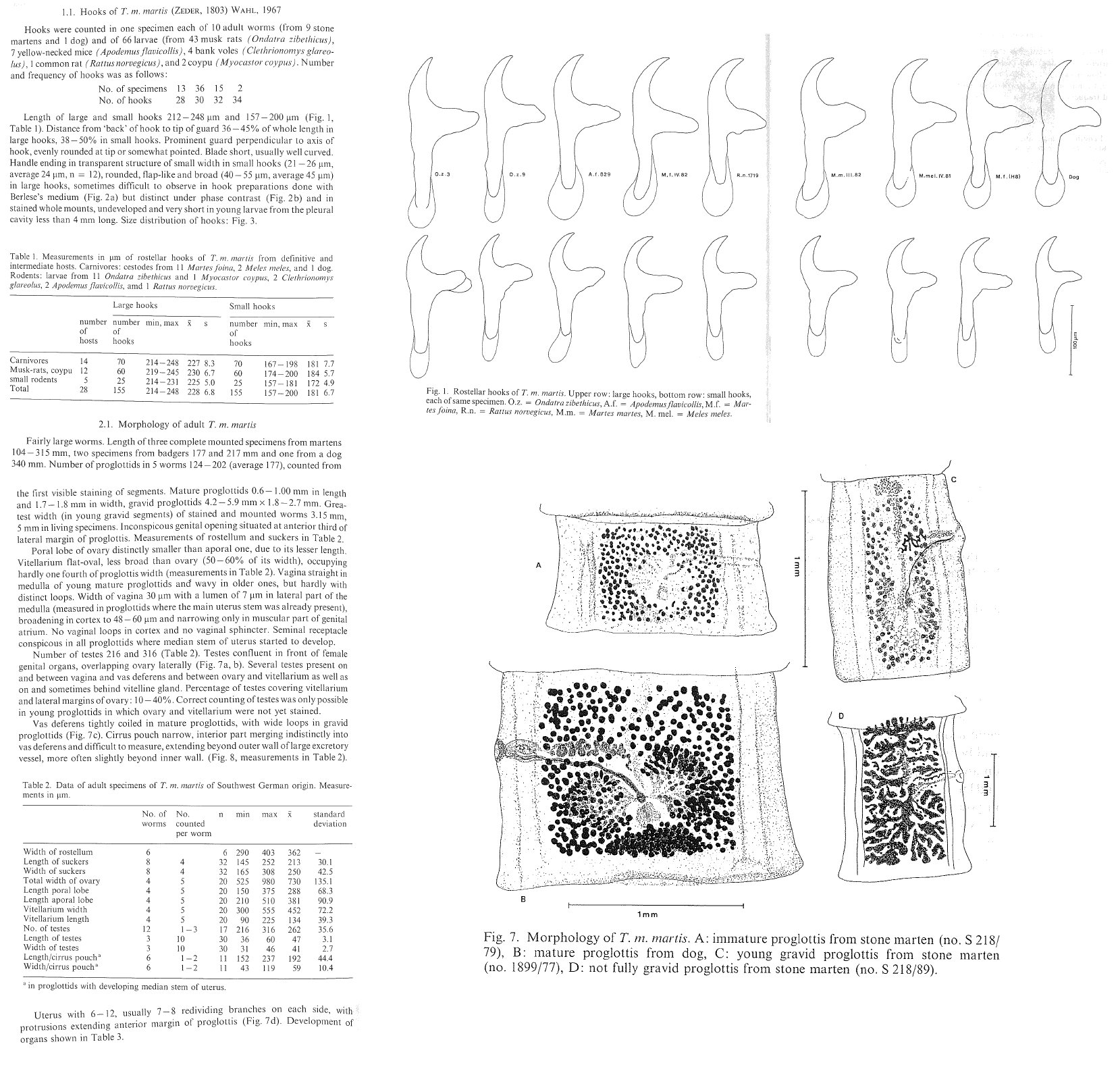 Loos-Frank, B. 1994. Re-description and occurrence of Taenia m. martis (Zeder, 1803) Wahl, 1967 in definitive and intermediate hosts of Southwest Germany. Zoologische Jahrbücher, Abteilung für Systematik, Geografie und Biologie der Tiere 121: 137-158.