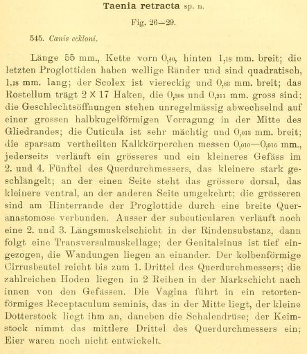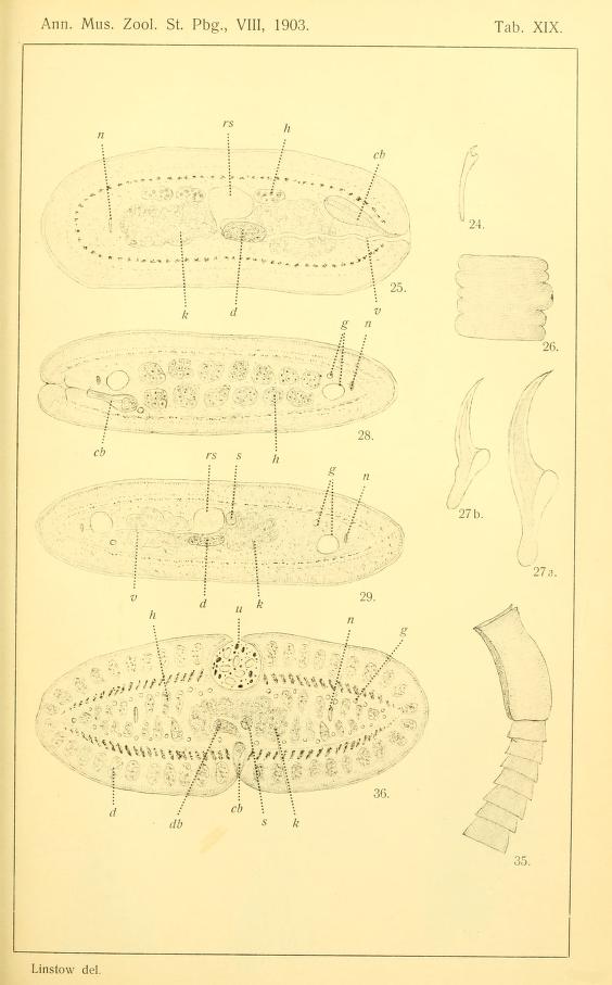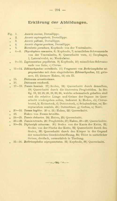 von Linstow, O. 1903 (1904). Entozoa des Zoologischen Museums der Kaiserlichen Akademie der Wissenschaften zu St. Petersburg. Annuaire du Musee Zoologique de l’Academie Imperiale des Sciences de St. Petersbourg 8: 265-294.