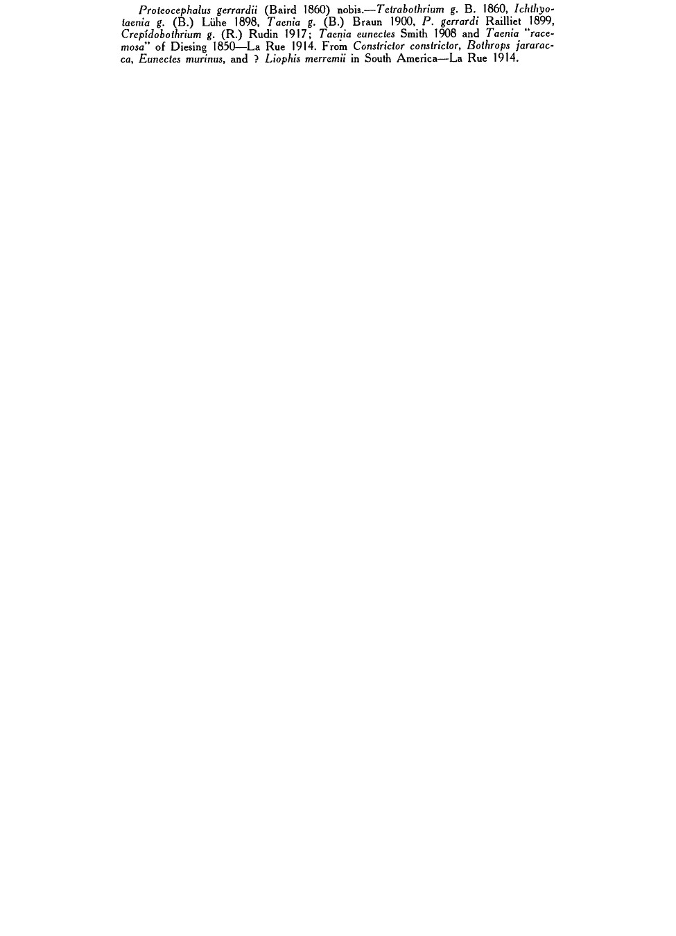 | Synonyms | Tetrabothrium gerrardii Baird, 1860 Ophiotaenia gerrardii (Baird, 1860) López-Neyra & Diaz-Ungria, 1958 Tetrabothrium boae MacCallum, 1921 |