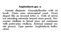 Mackiewicz, J. S. 1965. Isoglaridacris bulbocirrus gen. et sp. n. (Cestoidea: Caryophyllaeidae) from Catostomus commersoni in North America. Journal of Parasitology 51(3): 377-381.