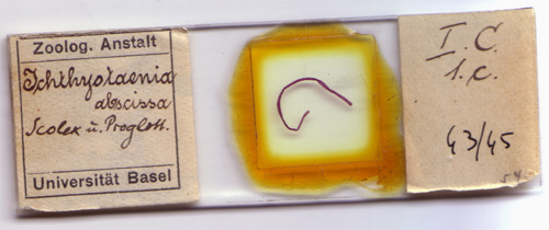 Riggenbach, E. 1895. Beiträge zur Kenntnis der Taenien der Süsswasserfische. Centralblatt für Bakteriologie und Parasitenkunde, Abteilung I 18: 609-613 + plate . (4116) Download PDF |