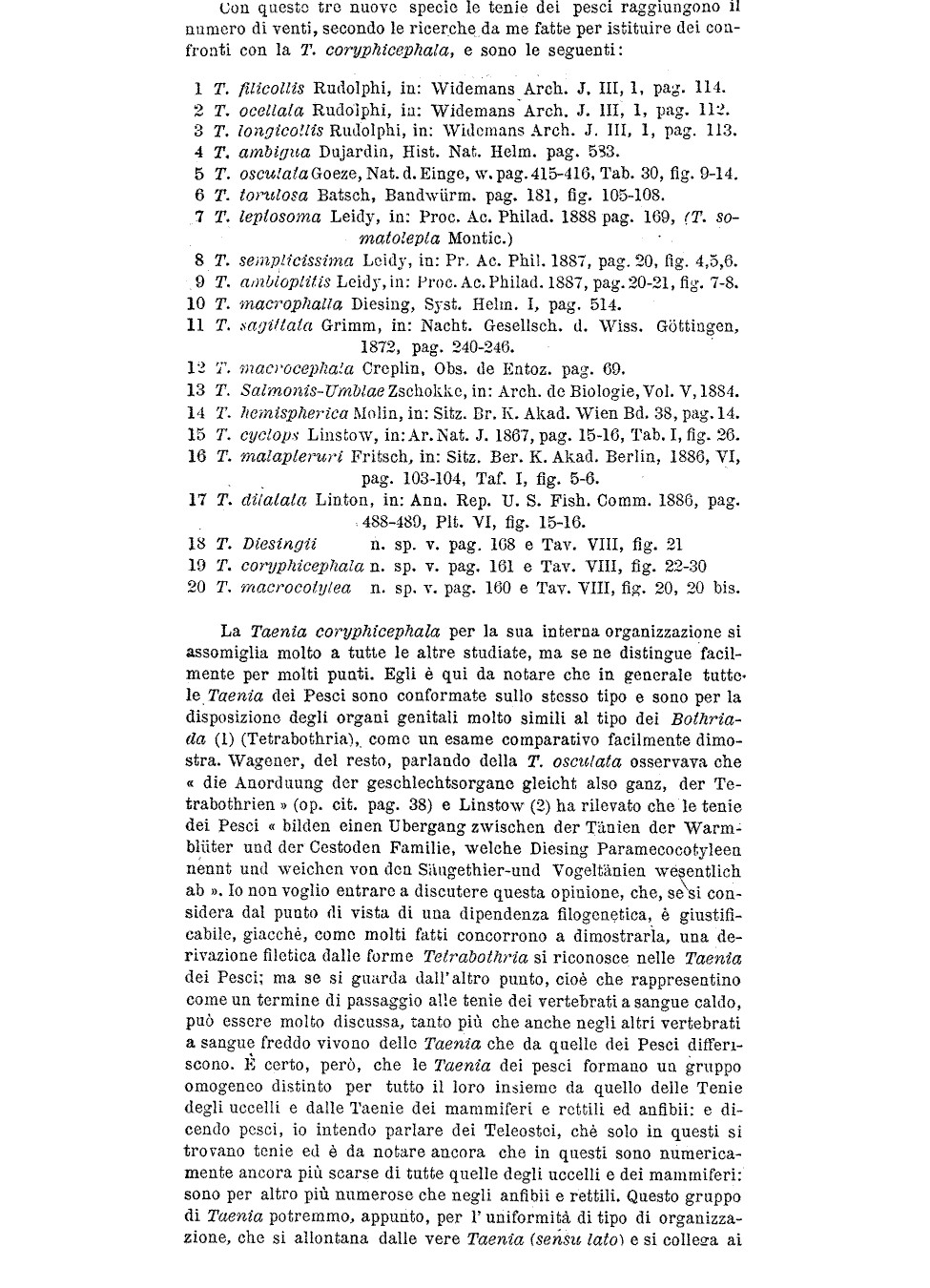Monticelli, F. S. 1891. Notizie su di alcune specie di Taenia. - Communicazione di Fr. Sav. Monticelli, (Tav. VIII). Bollettino della Societa dei Naturalisti in Napoli 5: 151-174 + Plate. (3993) Download PDF |