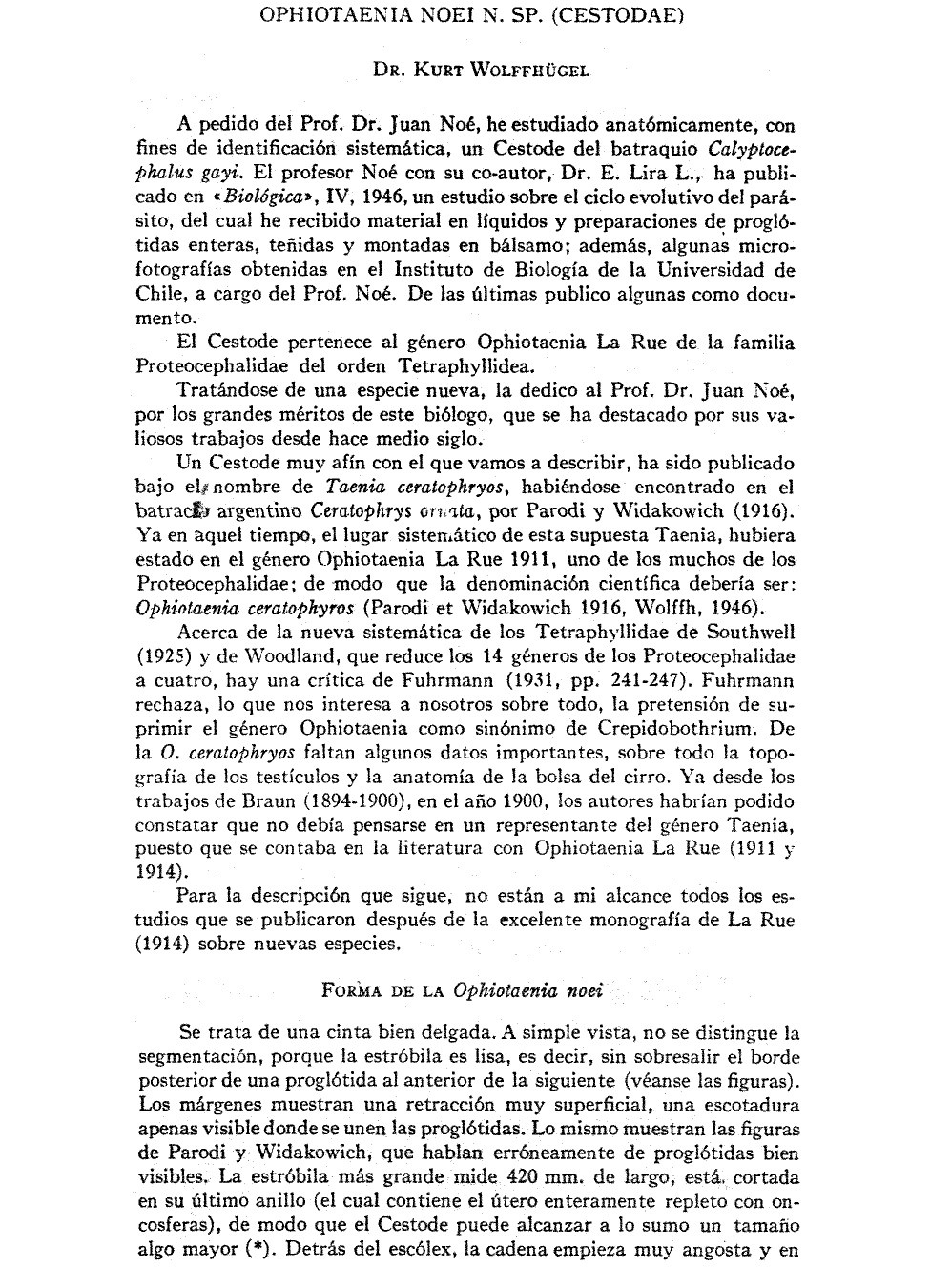 | Valid Name | Ophiotaenia noei Wolffhügel, 1948 |