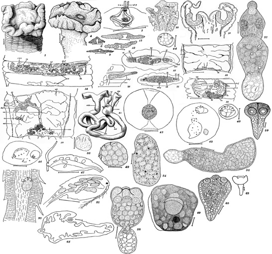 Essex, H. E. 1928. The structure and development of Corallobothrium with descriptions of two new fish tapeworms. Illinois Biological Monographs 11: 253-328. (4125) Download PDF |