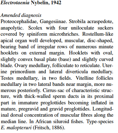 Type Species Electrotaenia malopteruri (Fritsch, 1886) Nybelin, 1942