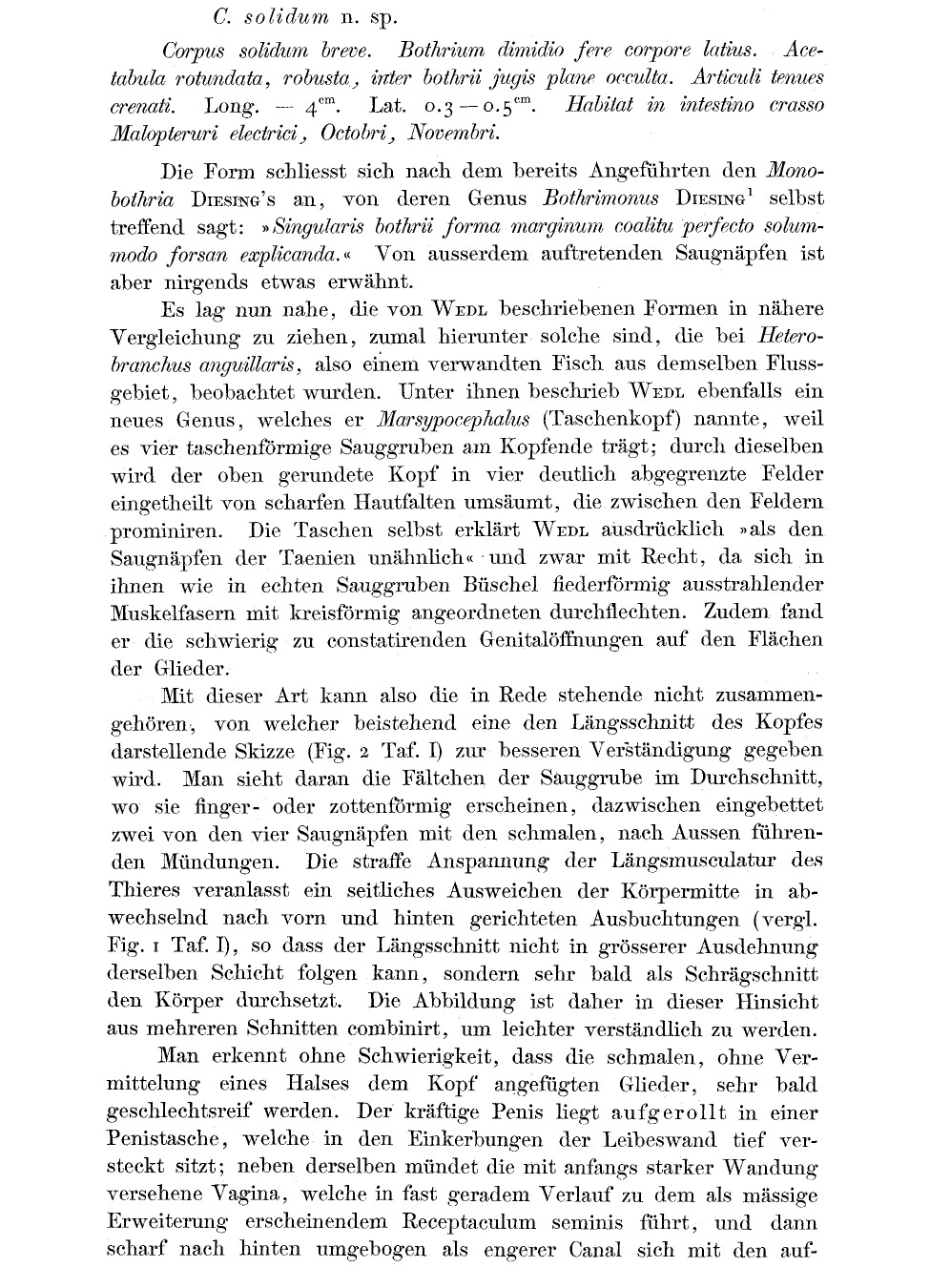 Fritsch, G. 1886. Die Parasiten des Zitterwelses. Sitzungsberichte der Königlich Preussischen Akademie der Wissenschaften zu Berlin, Sitzung der physikalisch-mathematischen Classe 6: 99-108 + plate I. (4123) Download PDFMola, P. 1906. Di alcune specia poco studiate o mal note di Cestodi. Annuario del Museo Zoologico della R. Università di Napoli 2: 1-12 + plates 3 . (4117) Download PDF |