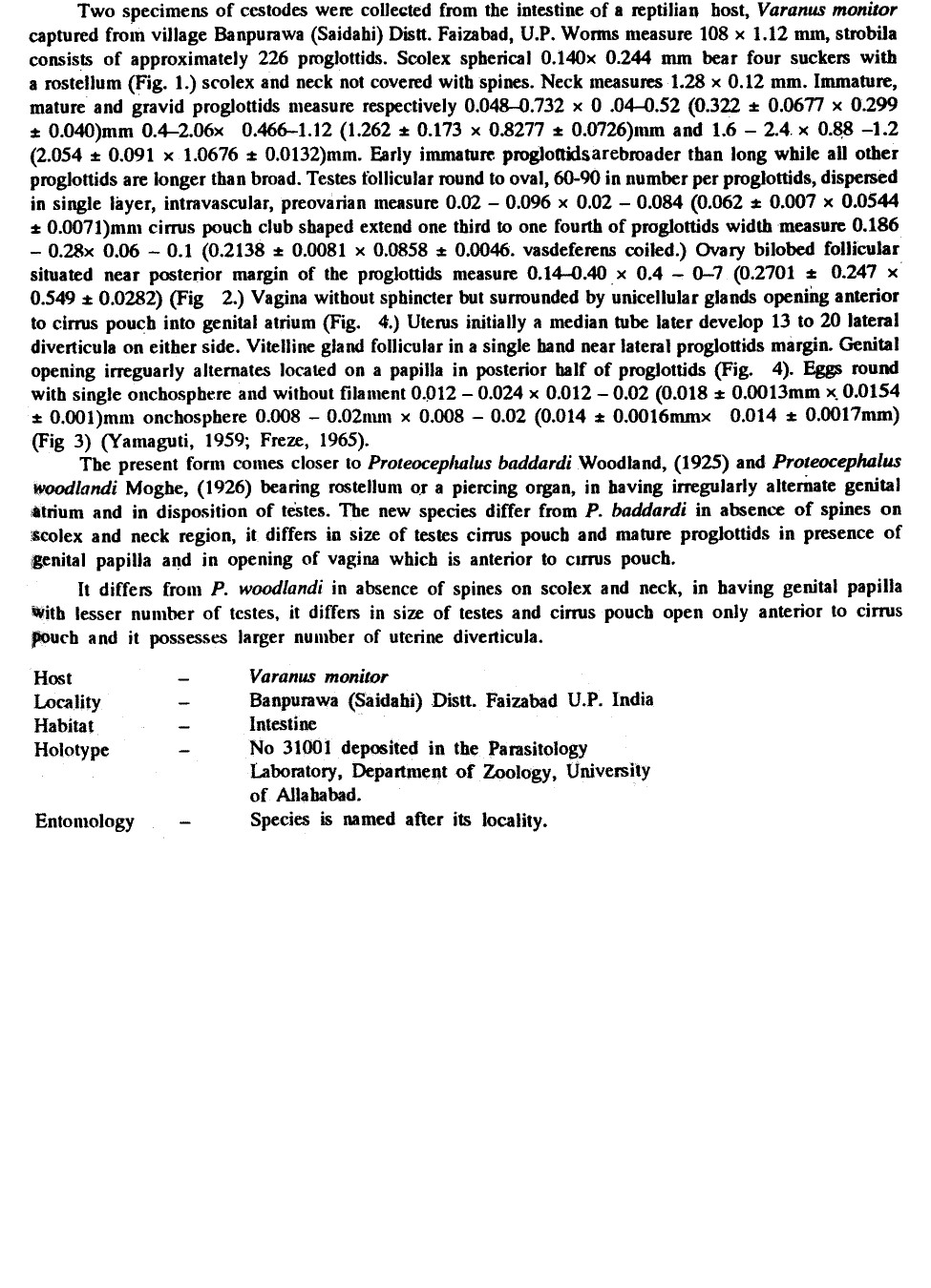 | Type Material | -holotype No. 31001 University of Allahabad, Parasitology Laboratory, Dept. of Zoology |