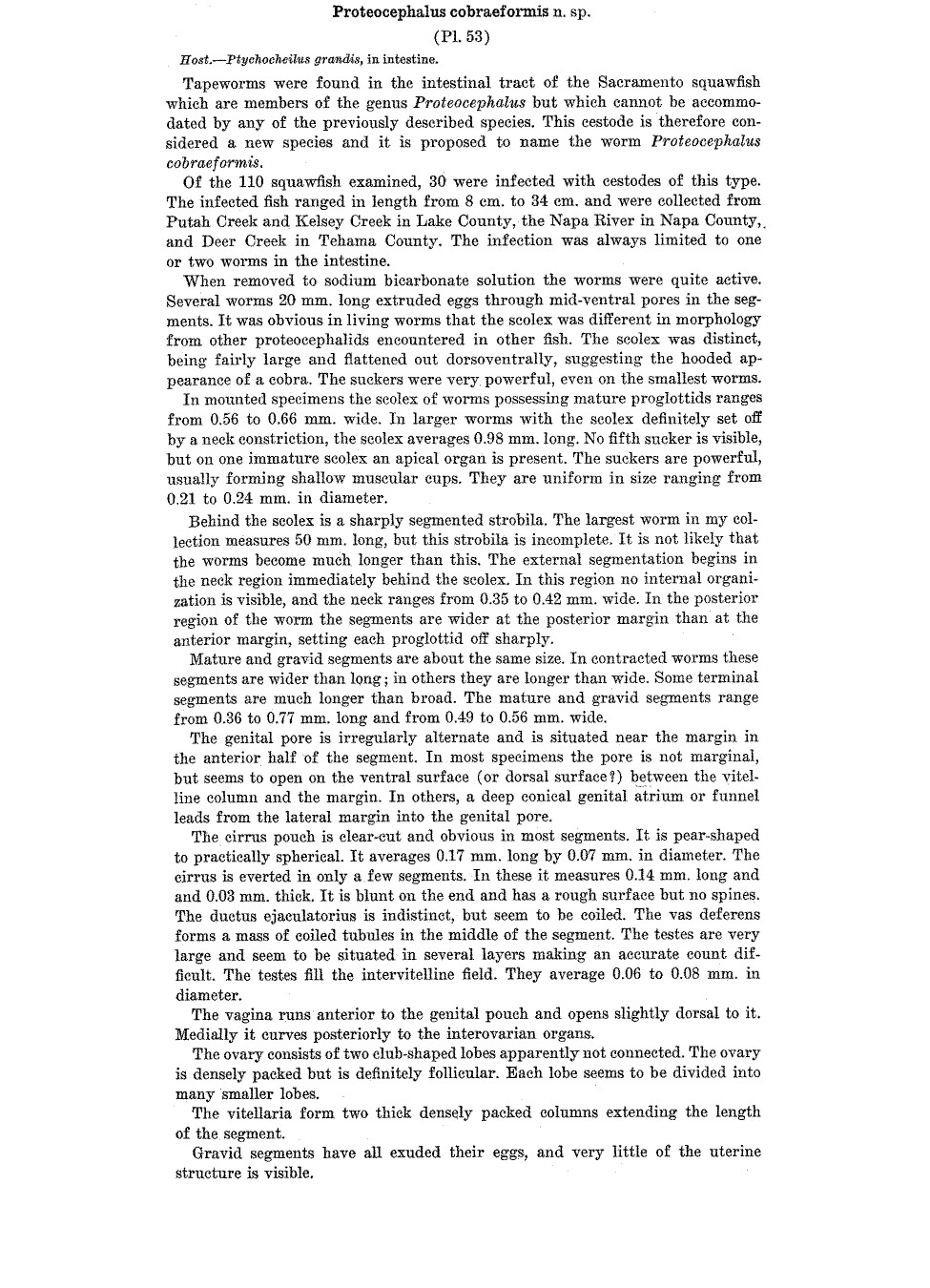 Scholz, T. and V. Hanzelová. 1999. Species of Proteocephalus Weinland, 1858 (Cestoda: Proteocephalidae) from cyprinid fishes in North America. Journal of Parasitology 85(1): 150-154.