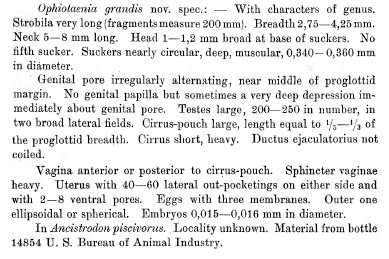 Valid Name Ophiotaenia grandis La Rue, 1911