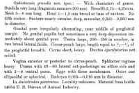 Total Number of Type Specimens -17 slides with anterior parts with 4 scoleces and immature proglottids (= ‘true’ O. grandis) and numerous fragments of strobilae with wide pregravid and gravid proglottids (= O. marenzelleri)