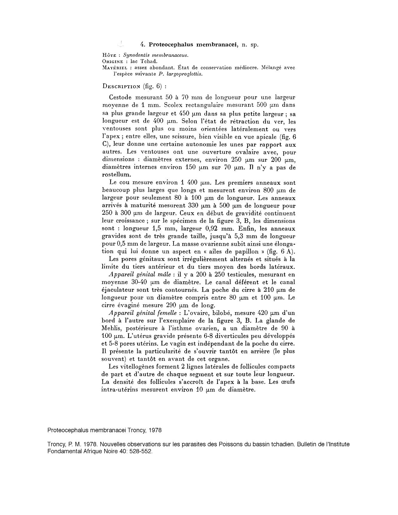 Troncy, P. M. 1978. Nouvelles observations sur les parasites des poissons du bassin tchadien. Bulletin de l’Institut Fondamental d’Afrique Noire 40: 528-552.