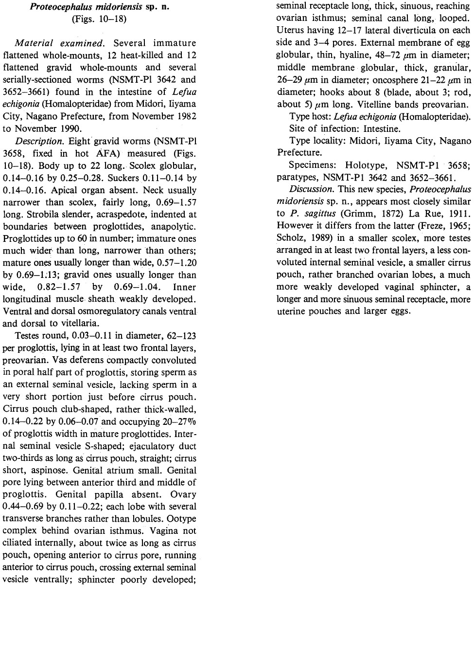 Shimazu, T. 1990. Some species of the genus Proteocpehalus (Cestoidea: Proteocephalidae) from Japanese freshwater fishes, with a description of a new species. Japanese Journal of Parasitology 39: 612-624. (4165) Download PDF |