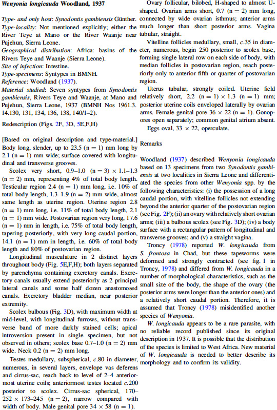 Woodland, W. N. F. 1937. Some cestodes from Sierra Leone.-I. On Wenyonia longicauda, sp. n., and Proteocephalus bivitellatus, sp. n. . Proceedings of the Zoological Society of London Part 4: 931-937 + Plate . (3967) Download PDF |