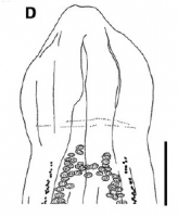 Fig. 3. Scolex morphology of Wenyonia spp. D, W. longicauda Woodland, 1937 (anterior part of the syntype - BMNH No. 1961.3.14.131). Scale-bars: 500µm.
