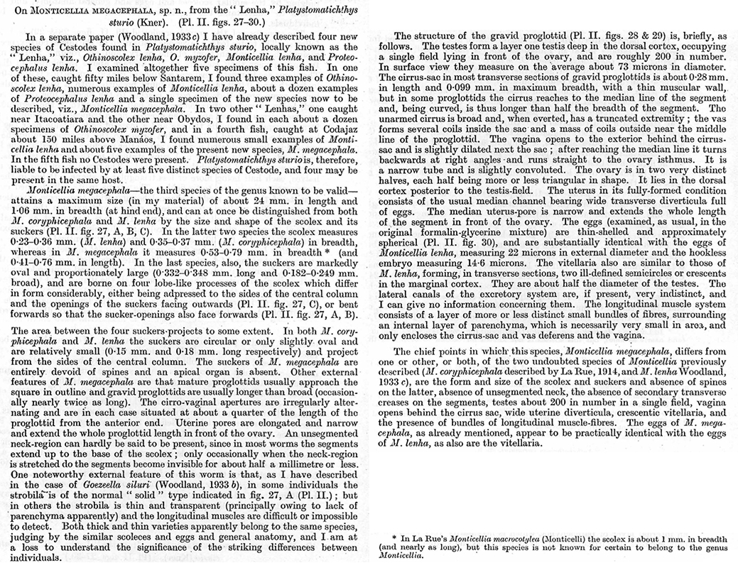 Woodland, W. N. F. 1934. On six new cestodes from Amazon fishes. Proceedings of the Zoological Society of London Part 1: 33-44 + Plates I. (509) Download PDF |