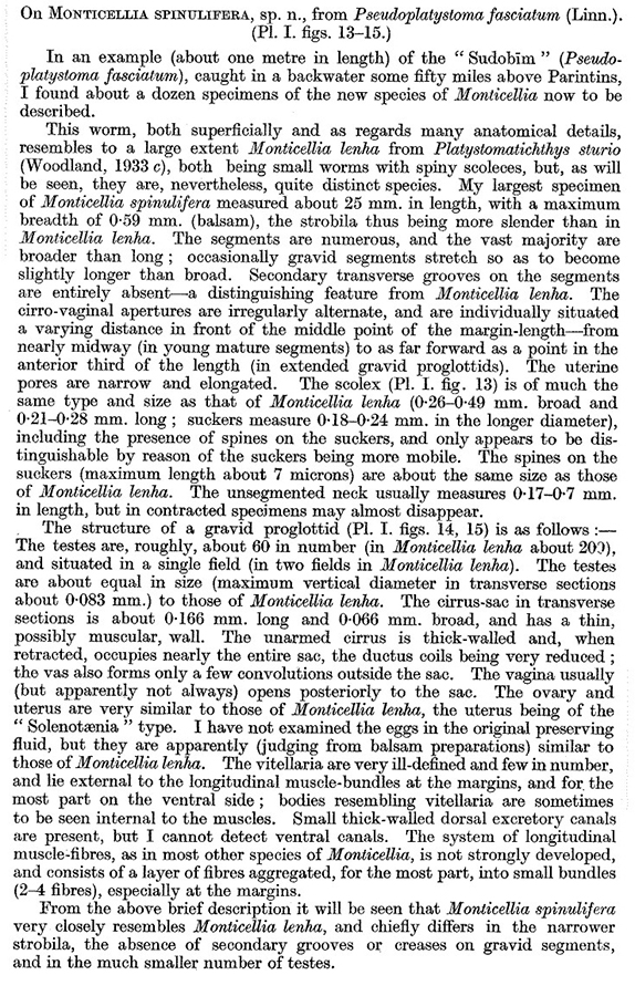 Woodland, W. N. F. 1935. Additional cestodes form the Amazon siluroids pirarara, dorad, and subobim. Proceedings of the Zoological Society of London Part 4: 851-862 +Plates .