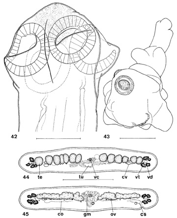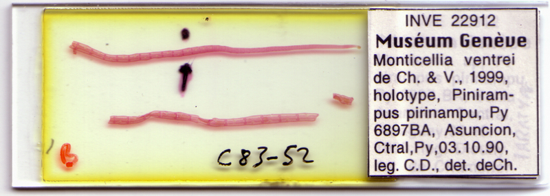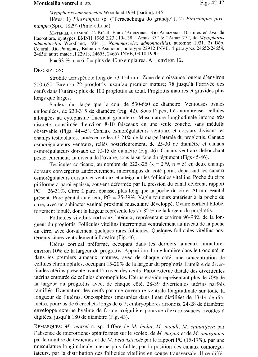 de Chambrier, A. and C. Vaucher. 1999. Proteocephalidae et Monticelliidae (Eucestoda: Proteocephalidea) parasites de poissons d’eau douce au Paraguay, avec descriptions d’un genre nouveau et de dix especes nouvelles. Revue Suisse de Zoologie 106: 165-240. (3925) Download PDF |
