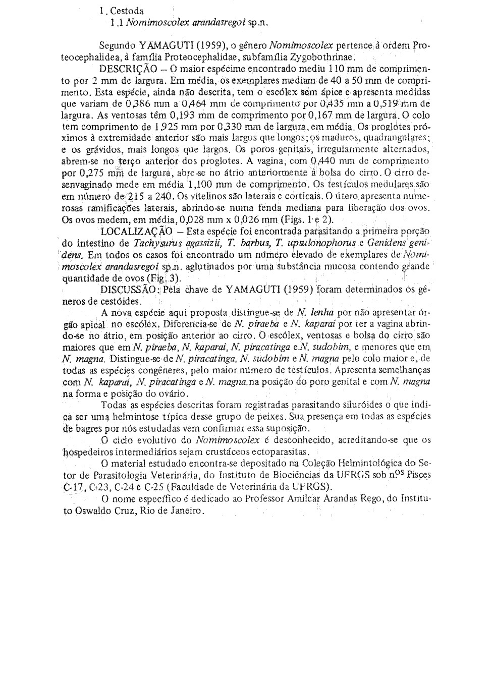 | Specimen Notes | UFRGS= Colecao Helmintologica do Setor de Parasiitologia Veterinaria, do Instituto de Biociencias da Universidade Federal do Rio Grande do Sul |