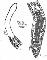 Figs. 1-3 Capingentoides fotedari sp. nov. 1. Anterior end. 2. Posterior end. 3. Eggs.