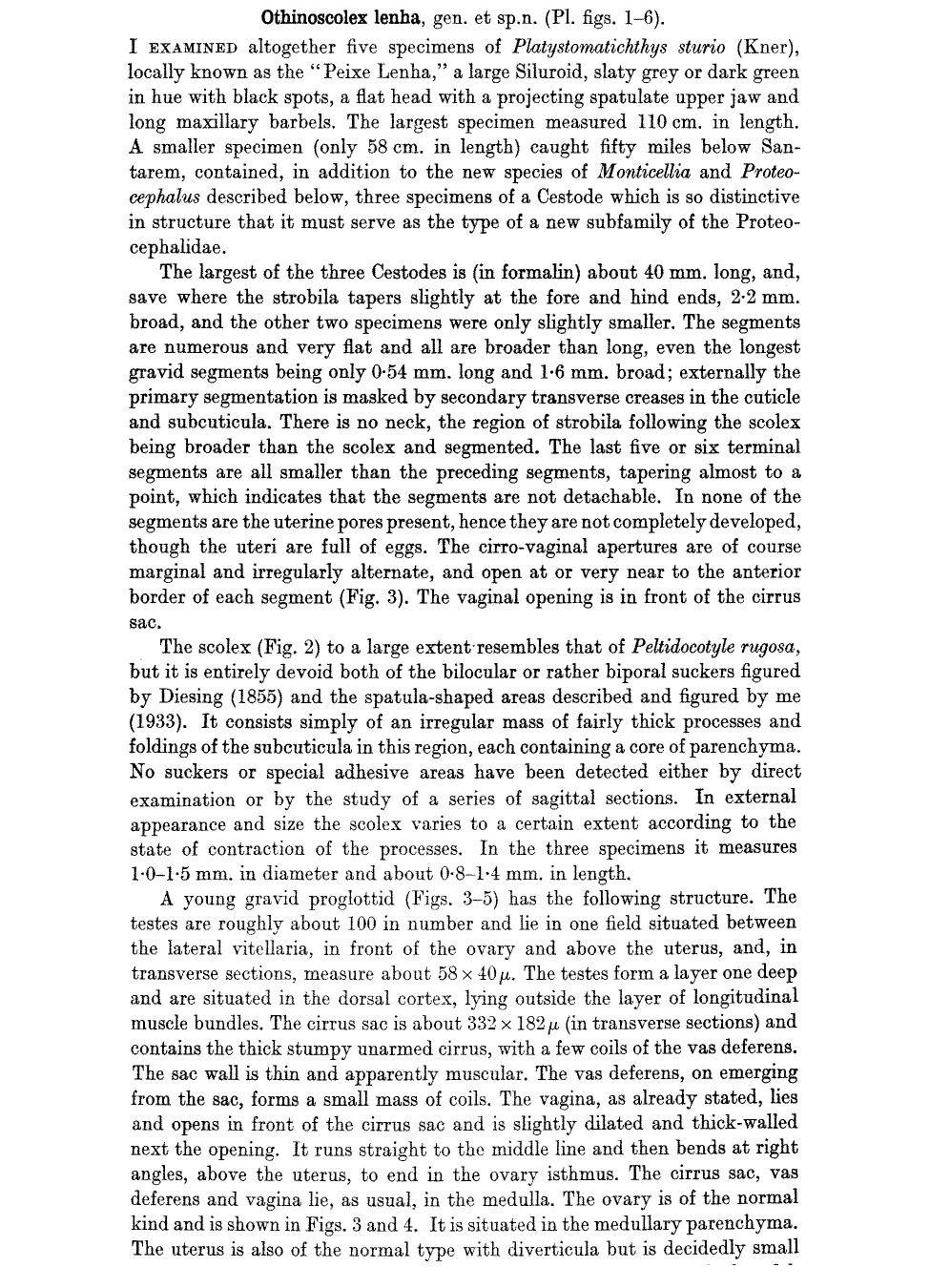 Woodland, W. N. F. 1933. On a new subfamily of proteocephalid cestodes-the Othinoscolecinae-from the Amazon siluroid fish Platystomatichthys sturio (Kner). Parasitology 25: 491-500 +Plate X. (3959) Download PDF |