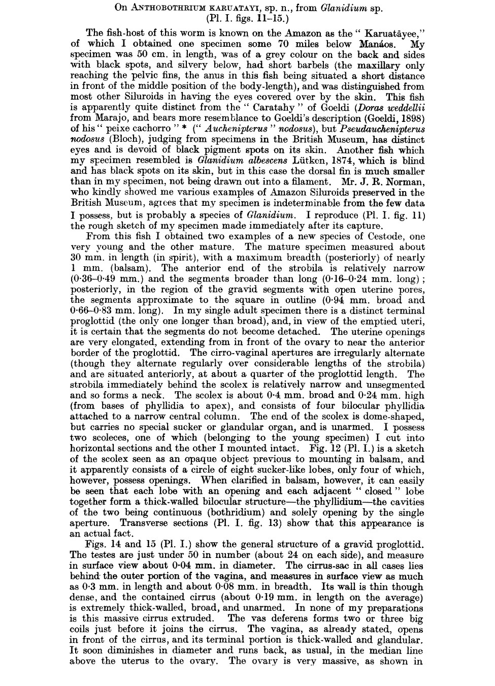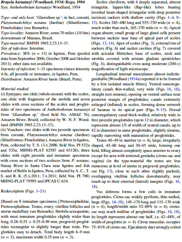 Woodland, W. N. F. 1934. On six new cestodes from Amazon fishes. Proceedings of the Zoological Society of London Part 1: 33-44 + Plates I.