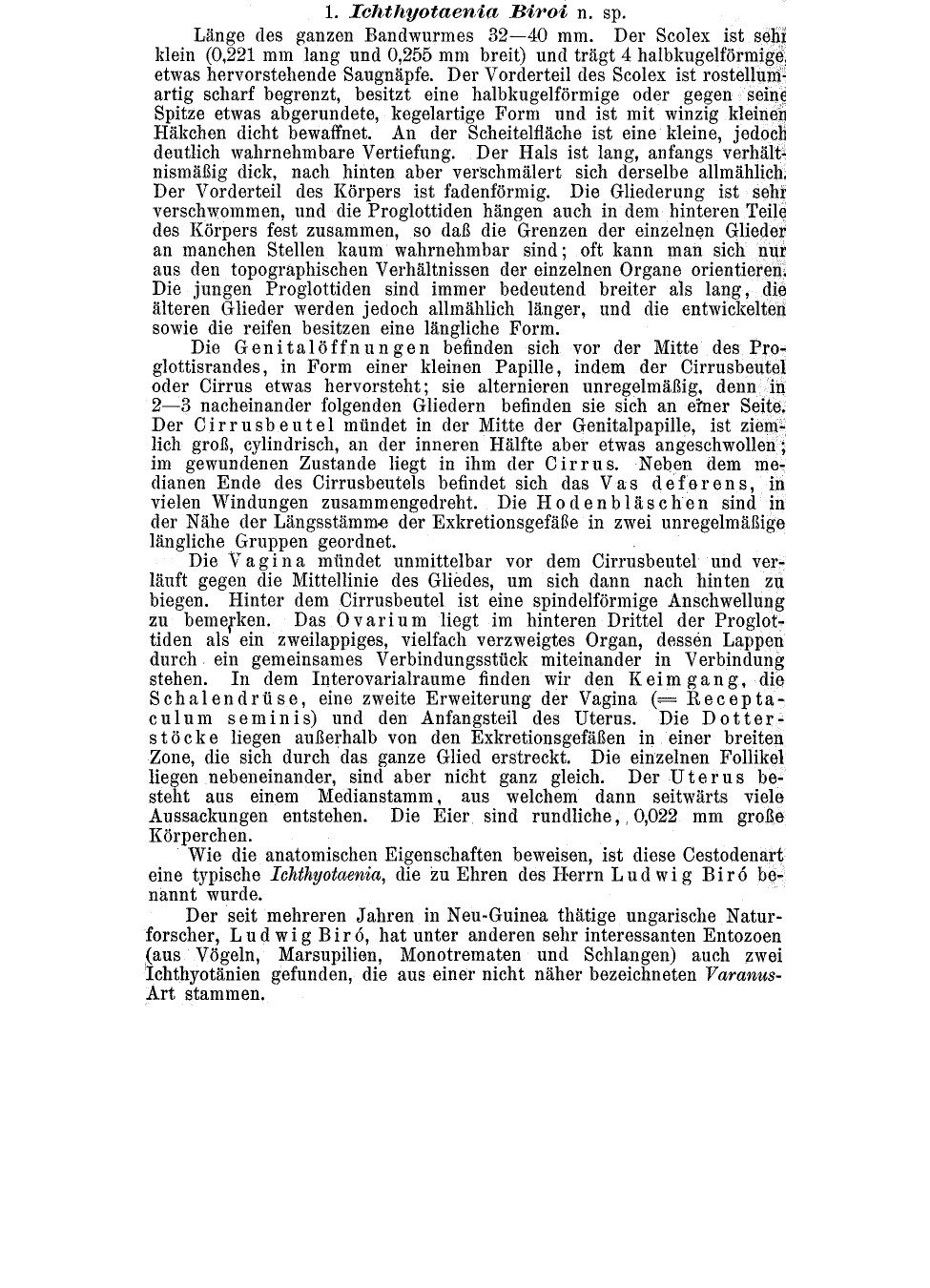 | Synonyms | Ichthyotaenia biroi Ratz, 1900 Proteocephalus biroi (Ratz, 1900) Johnston, 1911 |