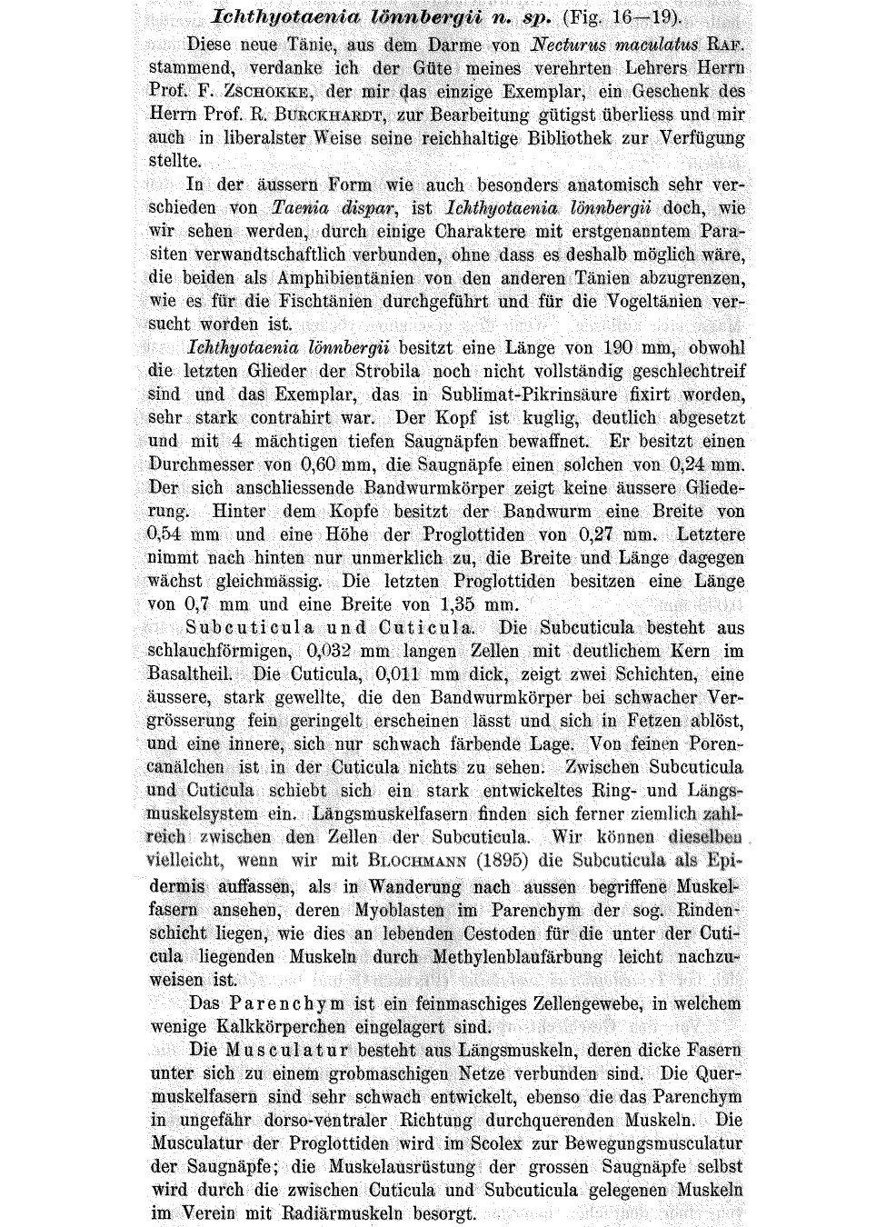 Fuhrmann, O. 1895. Die Tänien de Amphibien. Zoologische Jahrbücher. Abtheilung für Anatomie und Ontogenie der Thiere 9: 207-226 + Plate . (4058) Download PDFMeggitt, F. J. 1927. Remarks on the cestode families Monticellidae and Ichthyotaeniidae. Annals of Tropical Medicine and Parasitology 21: 69-87. (4037) Download PDF |