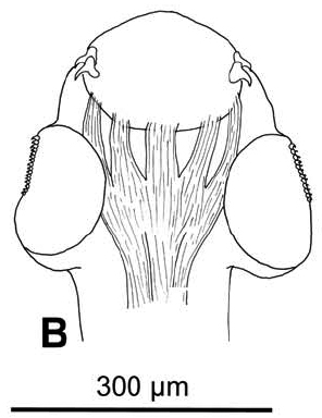 Figure 9. Outline of scoleces with retractor muscles of selected Gangesia taxa. B. Outline of the scoleces with retractor muscles of Gangesia agraensis. |