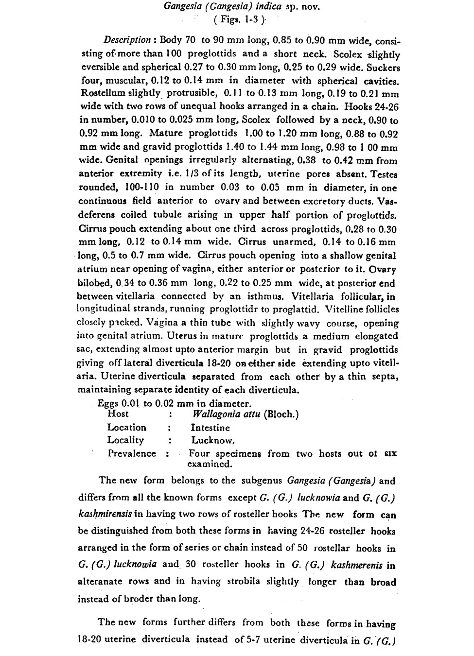 Gupta, A. and S. Parmar. 1982. On a new cestode, Gangesia (Gangesia) indica sp. nov. from a fresh-water fish, Wallagonia attu (Bloch.) from Lucknow, Uttar Pradesh. Indian Journal of Helminthology 34: 44-49. (4006) Download PDF |