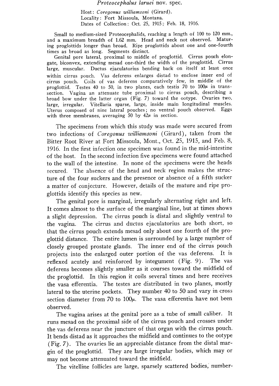 Faust, E. C. 1919. Two new Proteocephalidae. Journal of Parasitology 6(2): 79-83. (4085) Download PDFMeggitt, F. J. 1927. Remarks on the cestode families Monticellidae and Ichthyotaeniidae. Annals of Tropical Medicine and Parasitology 21: 69-87. (4037) Download PDF |