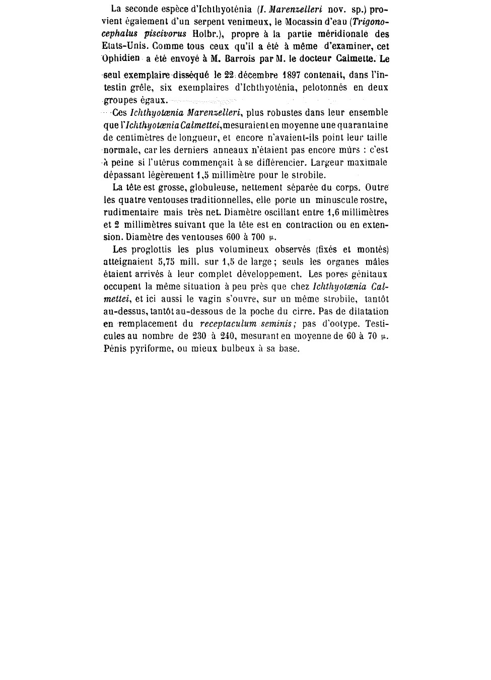 Barrois, T. 1898. Sur quelques Ichthyotaenias parasites des serpents. Bulletin de la Société des Sciences, de l’Agriculture et des Arts de Lille 2: 6-9. (4020) Download PDF |