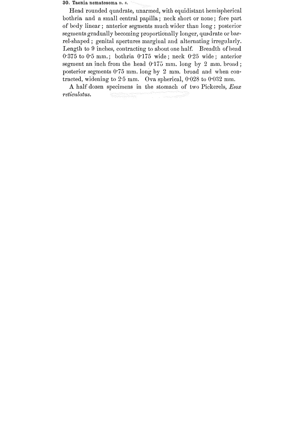 Ichthyotaenia nematosoma (Leidy, 1890) Meggitt, 1927