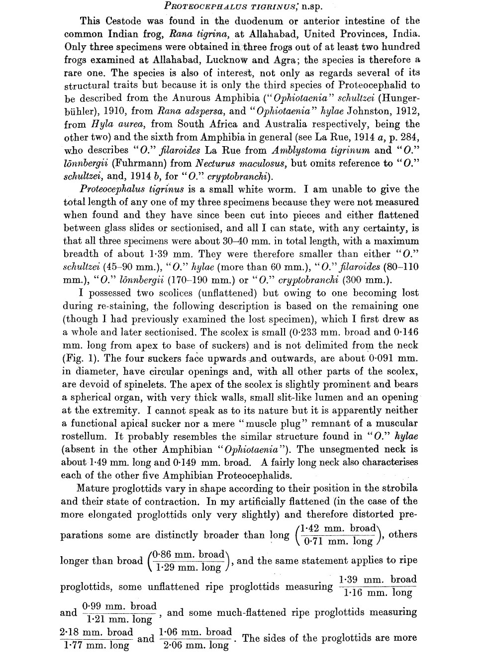 Woodland, W. N. F. 1925. On three new proteocephalids (Cestoda) and a revision of the genera of the family. Parasitology 17: 370-394. (3958) Download PDFMeggitt, F. J. 1927. Remarks on the cestode families Monticellidae and Ichthyotaeniidae. Annals of Tropical Medicine and Parasitology 21: 69-87. (4037) Download PDF |