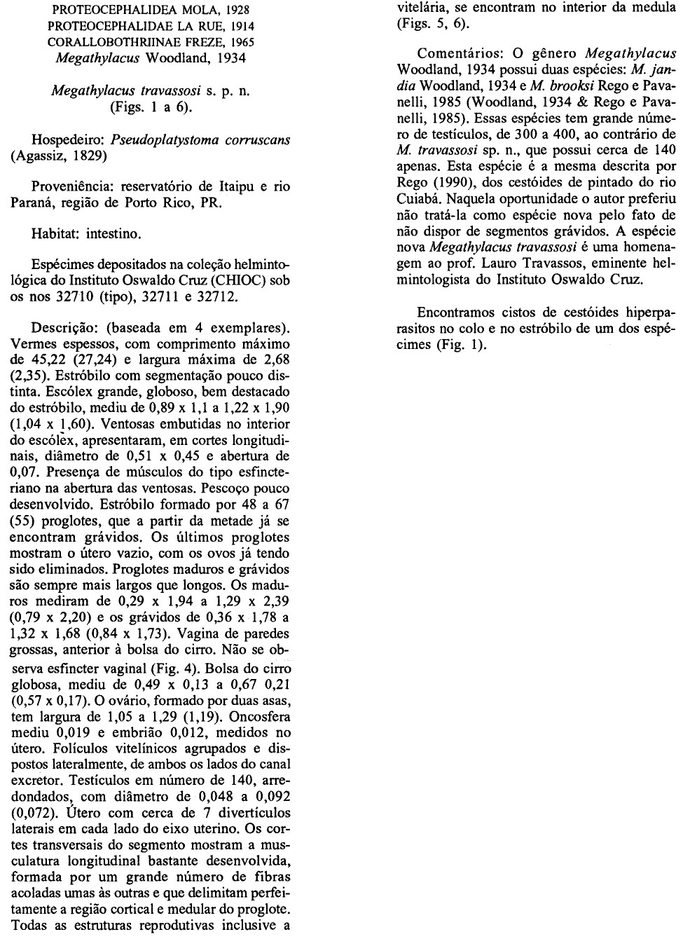 Pavanelli, G. C. and A. A. Rego. 1992. Megathylacus travassosi sp. n. and Nomimoscolex sudobim Woodland, 1935 (Cestoda - Proteocephalidea) parasites of Pseudoplatystoma corruscans (Agassiz, 1829) (Siluriformes - Pimelodidae) from the Itaipu reservoir and Parana River, Parana State, Brazil. Memorias do Instituto Oswaldo Cruz, Rio de Janeiro 87 (Suppl. I): 191-195. (3949) Download PDF |