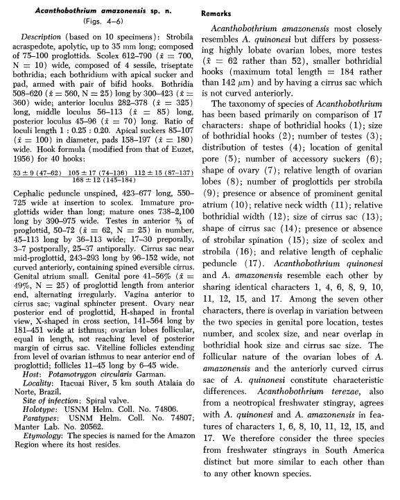 Mayes, M. A., D. R. Brooks and T. B. Thorson. 1978. Two new species of Acanthobothrium van Beneden 1849 (Cestoidea: Tetraphyllidea) from freshwater stingrays in South America. Journal of Parasitology 64: 838-841. (301) Download PDF |