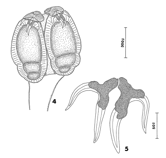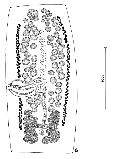 FIGURES 4-6. Acanthobothrium amazonensis n. sp. 6. Matrure proglottid.